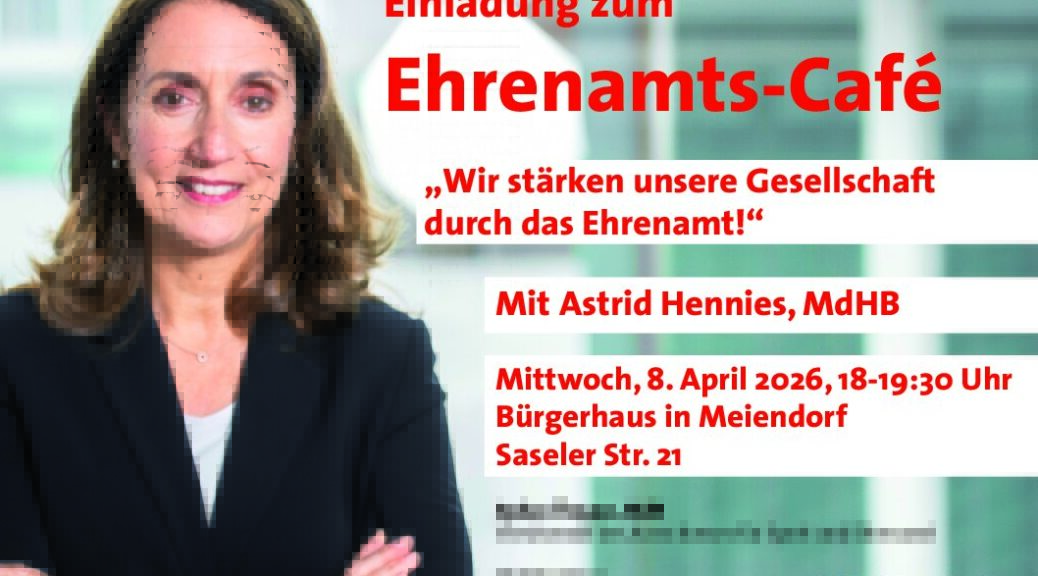 Die Bundestagsabgeordnete für Hamburg-Wandsbek und Vorsitzende des Ausschusses für Sport und Ehrenamt im Deutschen Bundestag, Aydan Özoğuz, sowie die Rahlstedter Bürgerschaftsabgeordnete, Astrid Hennies, laden ehrenamtlich Engagierte herzlich ein bei Kaffee und Kuchen mit ihnen ins Gespräch zu kommen. Unter dem Motto „Wir stärken unsere Gesellschaft durch das Ehrenamt“ steht dabei das von der Bundesregierung auf den Weg gebrachte Zukunftspaket Ehrenamt.