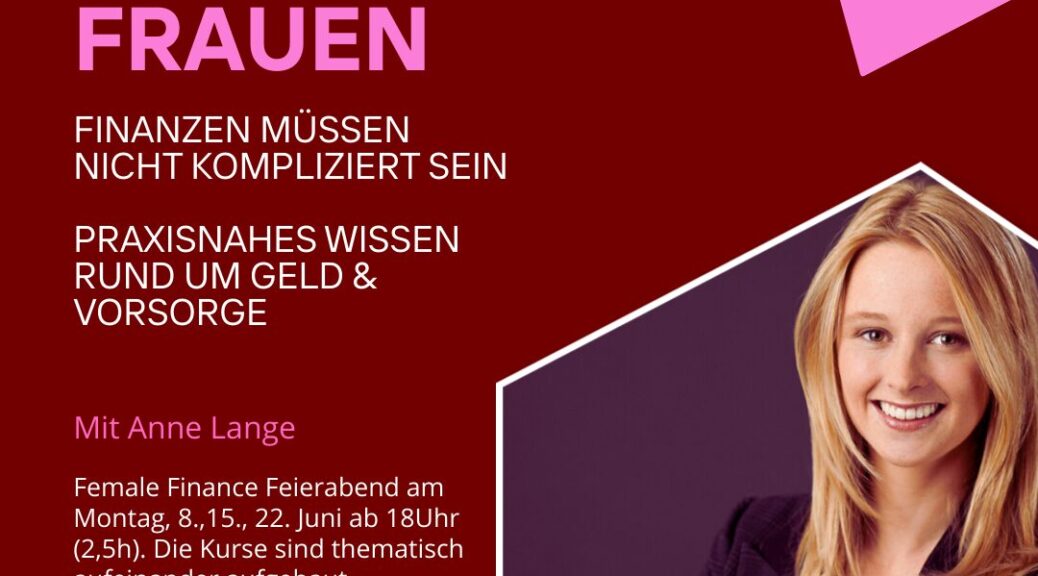 Finanzen müssen nicht kompliziert sein! Anne Lange vermittelt unkompliziert praxisnahes Wissen rund um Geld, Vorsorge und finanzielle Unabhängigkeit – von Frau zu Frau. Die drei Termine bauen aufeinander auf.