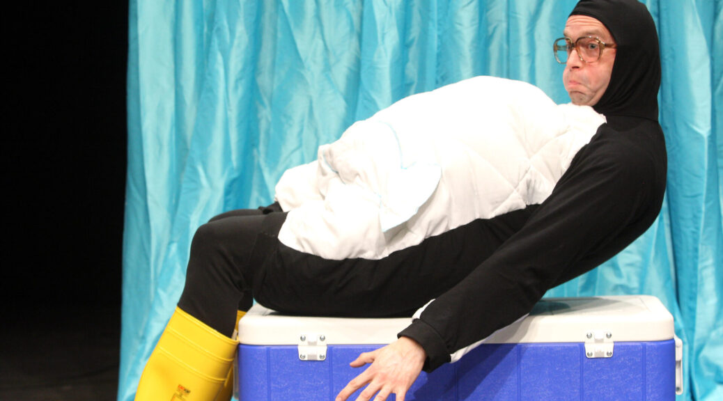 Ein kleiner, dicker Pinguin hat den Schnabel voll von der Kälte am Südpol. Trotz seiner ziemlich dicken Fettschicht friert und zittert und bibbert und schlottert und schnattert er. Also springt er auf die nächste Eisscholle und schon beginnt eine abenteuerliche Reise. Ziel: Sardinien, oder zumindest ein heißeres Plätzchen als die Antarktis. Doch auch die tollste Reise wird irgendwann langweilig. Dem dicken Pinguin hilft da nur eins: sich den Bauch voll schlagen mit Fischstäbchen, seinem Leibgericht! Aber was ist, wenn alle Fischstäbchen aufgefressen sind? Was ist, wenn die Eisscholle gänzlich geschmolzen ist? Dann heißt es, Schnabel zusammenbeißen, egal, wo man gelandet ist! Schließlich kann ein Pinguin immer noch als Kellner arbeiten, oder als Oberkellner, oder als Fischstäbchenoberkellner!